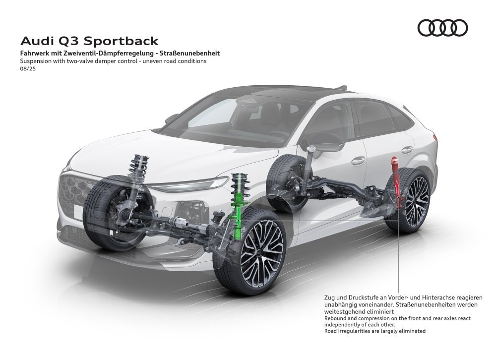 Uz učinkovite i djelomično elektrificirane motore s unutarnjim izgaranjem, Audi Q3 nudi novi adaptivni ovjes koji omogućuje ravnotežu između udobnosti i dinamike.