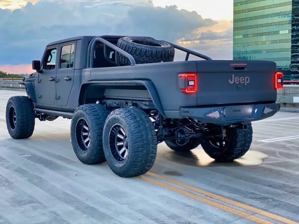 Rad na izradi ovog čudovišta započinje tako da uzmete potpuno novi, serijski Jeep Gladiator i doslovno ga prerežete na pola, produžite okvir, dodate dva dodatna kotača i prilagodite ga dizajnu koji je bespoštedan, agresivan i nimalo sličan ičemu što se trenutno može vidjeti na cesti.