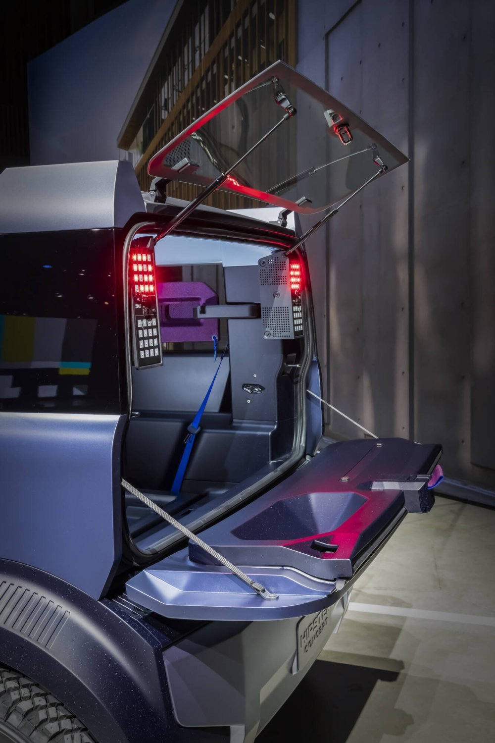 Prioritet se daje funkcionalnosti straga: vrata prtljažnika pokrivaju cijelu širinu Dacije Hipster koncepta i otvaraju se u dva dijela kako bi se osigurao ultra praktičan pristup prtljažniku.