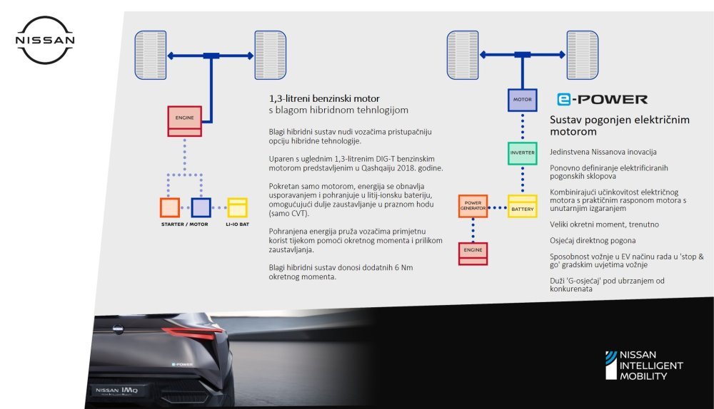 'Kupci s pravom očekuju štedljivija vozila, ali pritom žele osjetiti užitak vožnje. Električna vozila pružaju najveću razinu užitka u vožnji, a kupci obožavaju trenutačnu isporuku okretnog momenta i neprekidan val ubrzanja. Odabirom 100 posto električnog pogona motora e-POWER, kupci mogu uživati u prednostima vožnje električnog vozila, bez neizvjesnosti u pogledu dosega ili pristupa infrastrukturi punionica', izjavio je Marco Fioravanti, potpredsjednik Odjela za planiranje pri Nissanu Europe.