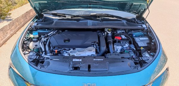 Naš testni model je imao onaj najjači pogonski plug-in sklop oznake Hybrid 225 e-EAT8 koji je kombinacija motora PureTech od 180 KS (132 kW) i električnog motora smještenog sprijeda od 81 kW povezanih s 8-stupanjskim elektrificiranim automatskim mjenjačem e-EAT8. Pogon je na prednja dva kotača. Ako ste se pitali u čemu je razlika u odnosu na slabiji plug-in pogonski sklop Hybrid 180 e-EAT8, onda treba reći da njegov benzinski motor ima 'samo' 150 KS (110 kW), dok je snaga električnog motora identična.