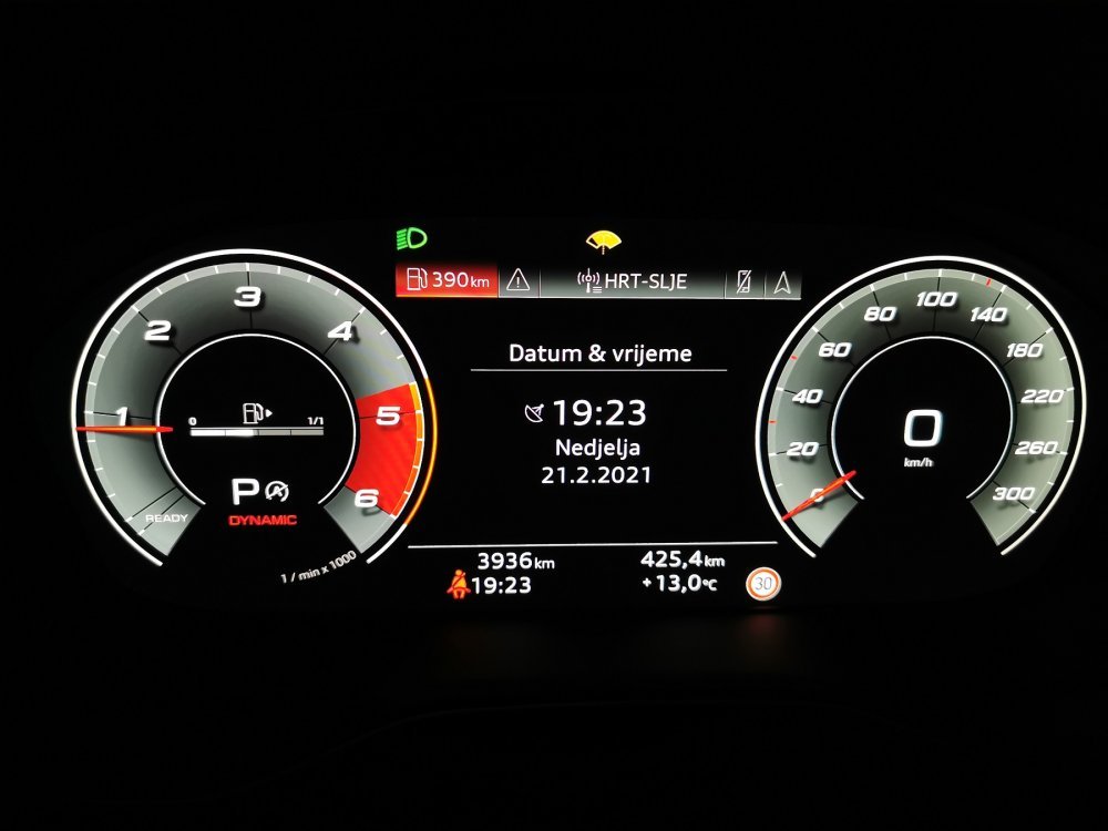 Mi smo imali opcijski Asistent promjene vozne trake s prepoznavanjem prometnih znakova. Unutar mogućnosti sustava prati oznake vozne trake pri brzini od 65 do 250 km/h te ukoliko vozilo napusti voznu traku bez uključivanja pokazivača smjera dolazi do blage korekcije upravljača kako bi vozilo ostalo u svojoj traci. Dodatno je moguće podesiti vibriranje upravljača. To uključuje i ranije spomenutu funkciju HOD, koja otkriva kada su dlanovi na upravljaču. Asistent za duga svjetla je sustav koji samostalno uključuje i isključuje duga svjetla ovisno o okolnim svjetlosnim uvjetima. Tu je i Prepoznavanje prometnih znakova, koji pomoću kamere prepoznaje prometne znakove (između ostalog za ograničenje brzine) i prikazuje ih u ekranu putnog računala odnosno opcijskog Audi virtualnog kokpita plus, kao u našem slučaju.
