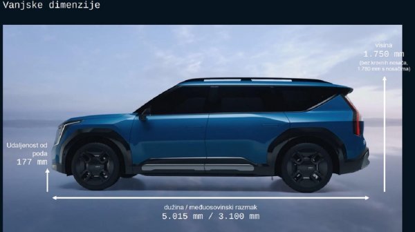 No vratimo se modelu EV9, a koliko je ovaj, u biti grandiozan model doista nešto novo čak i za Kijine standarde imali smo se priliku uvjeriti na domaćoj premijeri. Isprobali smo najopremljeniju verziju GT-Line Launch s AWD pogonom na sva četiri kotača. Što se pogonskog sklopa tiče, riječ je o modelu s dva elektromotora (po jedan na svakoj osovini) ukupne snage od 282,6 kW (384 KS), a pogoni ga baterija kapaciteta 99,8 kWh. Ova konfiguracija isprobanom EV9, prema proizvođaču, omogućuje domet u mješovitim uvjetima vožnje od čak 505 km (WLTP).