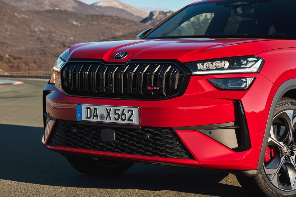 Kodiaq RS također ima sportski dizajniran branik u prednjem dijelu, koji uključuje nekoliko crno obojenih dijelova. Ekskluzivna rešetka hladnjaka sa svojom vodoravnom svjetlosnom trakom još je jedan vrhunac dizajna. Opsežna standardna oprema novog Kodiaqa RS uključuje značajke visoke kvalitete kao što su matrična LED glavna svjetla s animiranim efektom dobrodošlice i funkcijom osvjetljenja u zavojima, kao i LED stražnja svjetla s animiranim pokazivačima smjera povezanim crvenom kristalnom strukturnom trakom. Pristupni sustav KESSY uključuje funkcije otvaranja pri prilazu i zaključavanja pri izlasku.