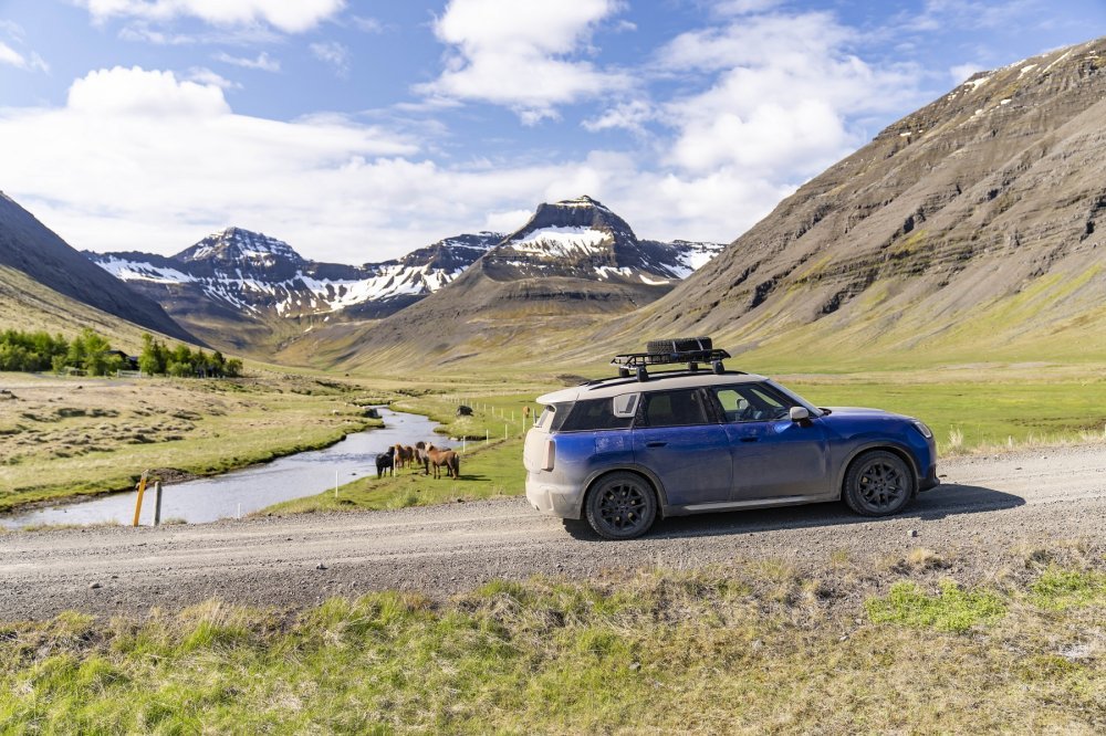 Prašina i blato na grubim rutama ne mogu umanjiti njegov sjaj tijekom putovanja. Opušten i električan na islandskoj neravnoj obali. Potpuno električni MINI Countryman s lakoćom svladava zelene livade, tmurne sipare ili uske staze s prevjesima litica i prijelazima preko vode. Lagana terenska vožnja teško smanjuje električni domet.