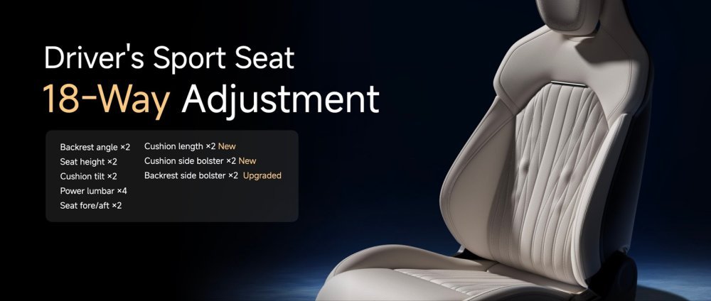 Nova generacija Xiaomi SU7 podiže standard luksuza i udobnosti zahvaljujući i sveobuhvatnim nadogradnjama dizajna sjedala i kvalitete interijera. Prednja sjedala sada dolaze s nizom inovacija koje uključuju serijski sustav ventilacije i grijanja sjedala u cijeloj liniji. Vozačevo sjedalo nudi 18-smjernu električnu regulaciju s produljenjem naslona, aktivnim bočnim potporama i električno produljivim naslonom za noge od 60 milimetara, dok suvozačevo sjedalo opcionalno uključuje konfiguraciju nulte gravitacije s nagibom od 123 stupnja, optimiziranom za ravnomjernu potporu cijelom tijelu.