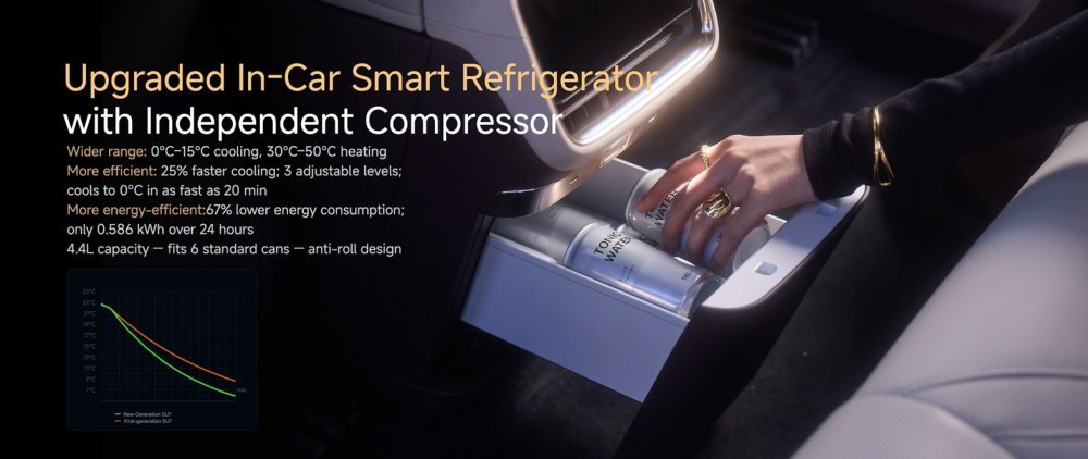 Hladnjak u vozilu također je nadograđen. Novi sustav s izvlačenjem i neovisnim kompresorom omogućuje brže hlađenje i tri prilagodljiva načina rada - Tihi, Standardni i Performanse, uz širi raspon temperatura, bolju stabilnost i veću učinkovitost.
