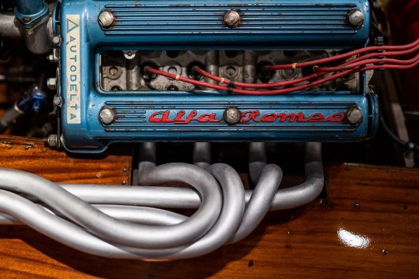Na polju motornih čamaca motori, modificirani u brodskoj verziji, često su davani isključivo na privremenu uporabu, a njima je trkaći odjel upravljao izravno iz trkaćeg odjela Alfa Romea. To je slučaj, na primjer, kod motora Alfetta. Dakle, izložba je prilika za povijesni povratak: susret između Arna II° - glatkog jednotrupca izgrađenog u brodogradilištu Picchiotti u Viareggiu 1946. godine, posebno obnovljenog, nakon 70 godina, za ovu izložbu - i motora koji je u to vrijeme montiran, onaj Alfette 158. Motor koji je, kada je 1950. godine Alfa Romeu donio prvi naslov Formule 1 u povijesti, već osvojio tri svjetska prvenstva na vodi, talijanski naslov, svjetski brzinski rekord i puno više, s Achilleom Castoldijem kao vozačem.