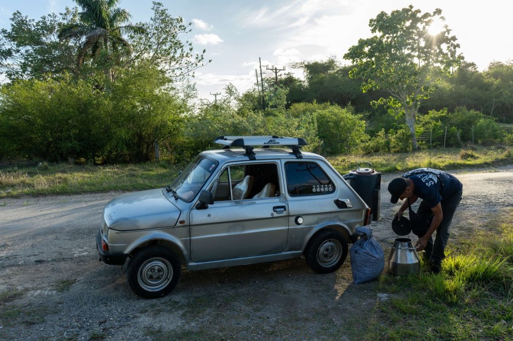 U malom mjestu Aguacate, nedaleko od Havane, 56-godišnji mehaničar Juan Carlos Pino prepravio je svoj stari automobil, poljski Fiat iz 1980-ih, tako da umjesto benzina koristi drveni ugljen.
