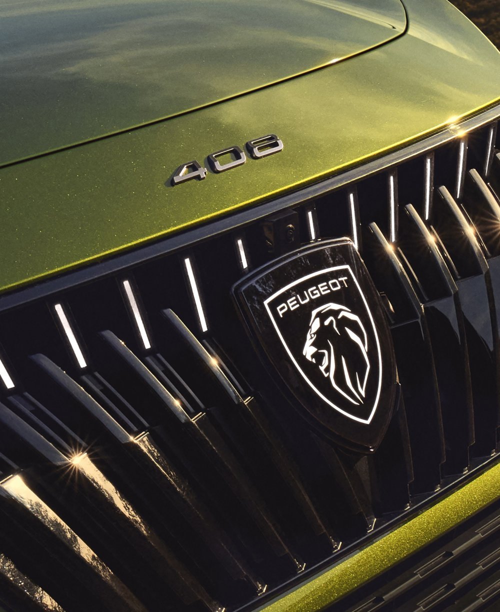Straga, novi 408 prvi je model u ponudi koji ima osvijetljeni natpis PEUGEOT, okružen sjajnim crnim dekorom i besprijekorno integriran u prozirnu traku leća koja se proteže širinom automobila. Na oba kraja, svi modeli novog 408 sada imaju premium svjetlosni potpis s tri kose LED kandže.