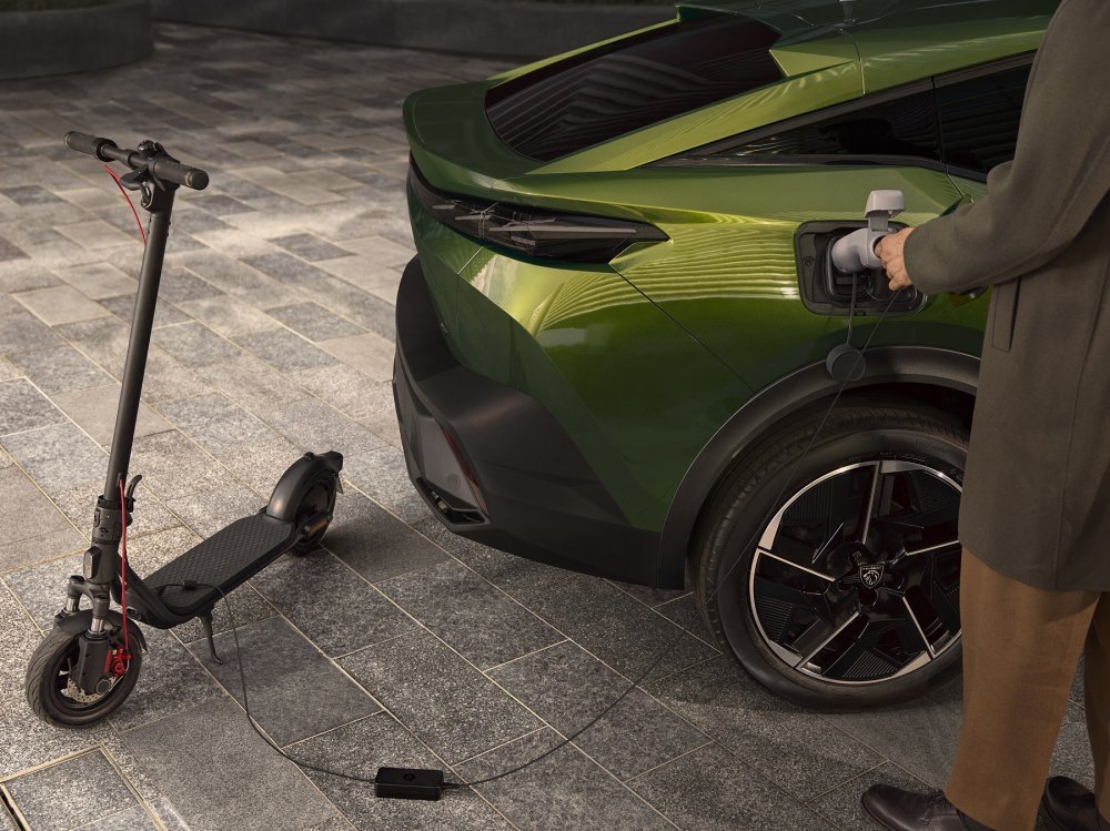 Novi PEUGEOT E-408 unaprijed je opremljen V2L (Vehicle-to-Load) funkcijom, koja korisnicima omogućuje napajanje vanjskih uređaja putem visokonaponske baterije automobila - na primjer, punjenje električnog bicikla ili pokretanje prijenosne rasvjete. Sustav isporučuje do 3,5 kW i 16 A. Adapter je dostupan kao dodatna oprema kod PEUGEOT prodavača.