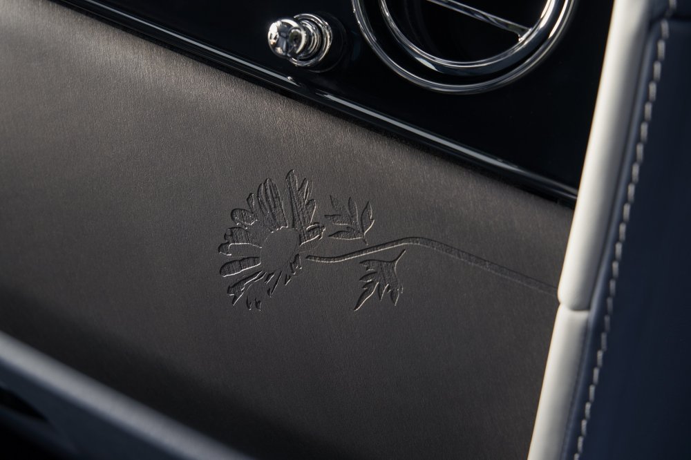 U unutrašnjosti, motiv tratinčice krasi prednju masku i dio vodopada između stražnjih sjedala. Dizajn je pomno nanesen na površinu Blackwood tehnikom pjeskarenja. Za stvaranje dizajna, drvo je podvrgnuto preciznom procesu pjeskarenja u kojem se mlaz finih mineralnih čestica usmjerava na furnir, koji nježno uklanja mikroskopske slojeve površine. Međuigra svjetla i sjene preko oblikovane površine stvara trodimenzionalni efekt, dodajući vizualni interes gotovom komadu.