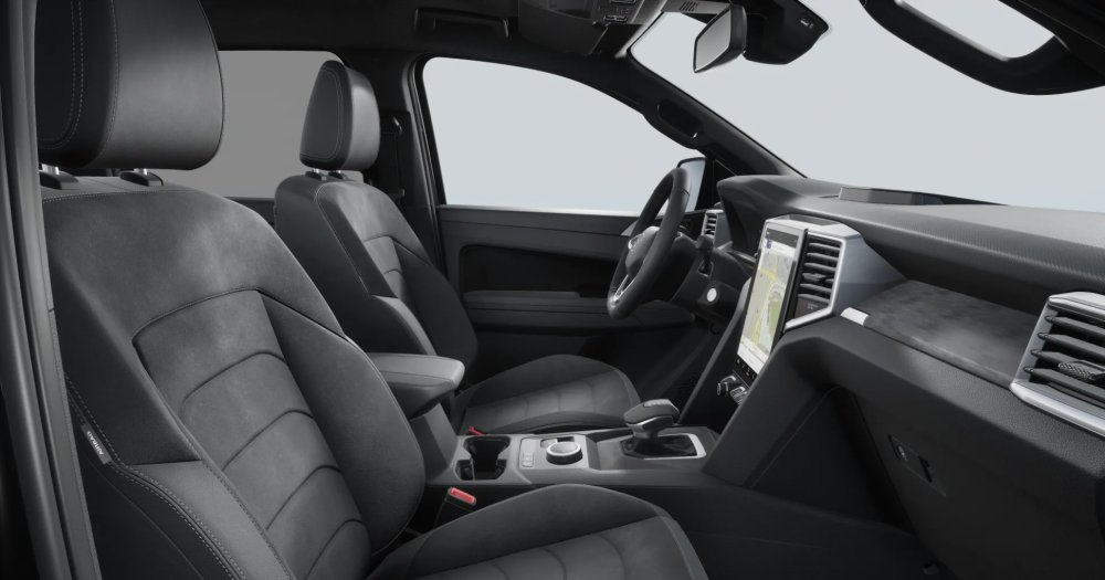 Unutar Dark Labela, sjedala u tamnim 'ArtVelours' materijalima, crne obloge vrata i središnja konzola te stropna obloga u boji 'Ebony Black' naglašavaju sofisticirani izgled pickupa. Kožni upravljač s amblemom Dark Labela i velur prostirke s logotipom Dark Labela sprijeda upotpunjuju tamni ambijent Amarok special editiona.