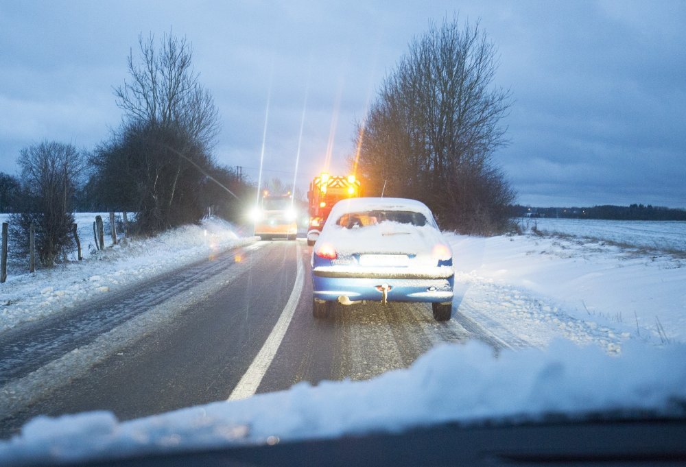 Na snježnoj cesti pratite tragove guma urezane u površinu radi sigurnosti
