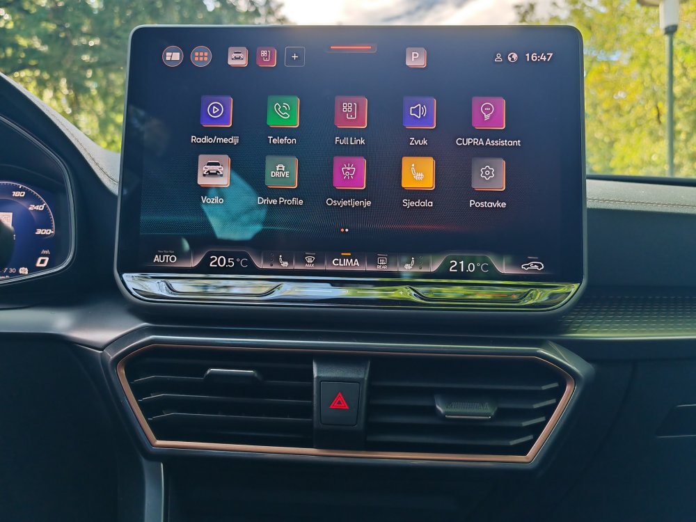 Inače, kapacitet prtljažnika Formentora varira: modeli s benzinskim i dizelskim motorom (u našem slučaju) s pogonom na prednja dva kotača imaju volumen od 450 l, dok e-Hybrid model ima 345 l. Kada se preklopi naslon stražnjih sjedala volumen raste do 1410 l. Razlika u modelima je i u volumenu spremnika goriva, pa tako e-Hybrid ima spremnik od 40 l, 4Drive 55 l, a ostale verzije 50 l. Mi smo imali i standardnu funkciju Virtualna pedala za električno otvaranje vrata prtljažnika putem senzora.