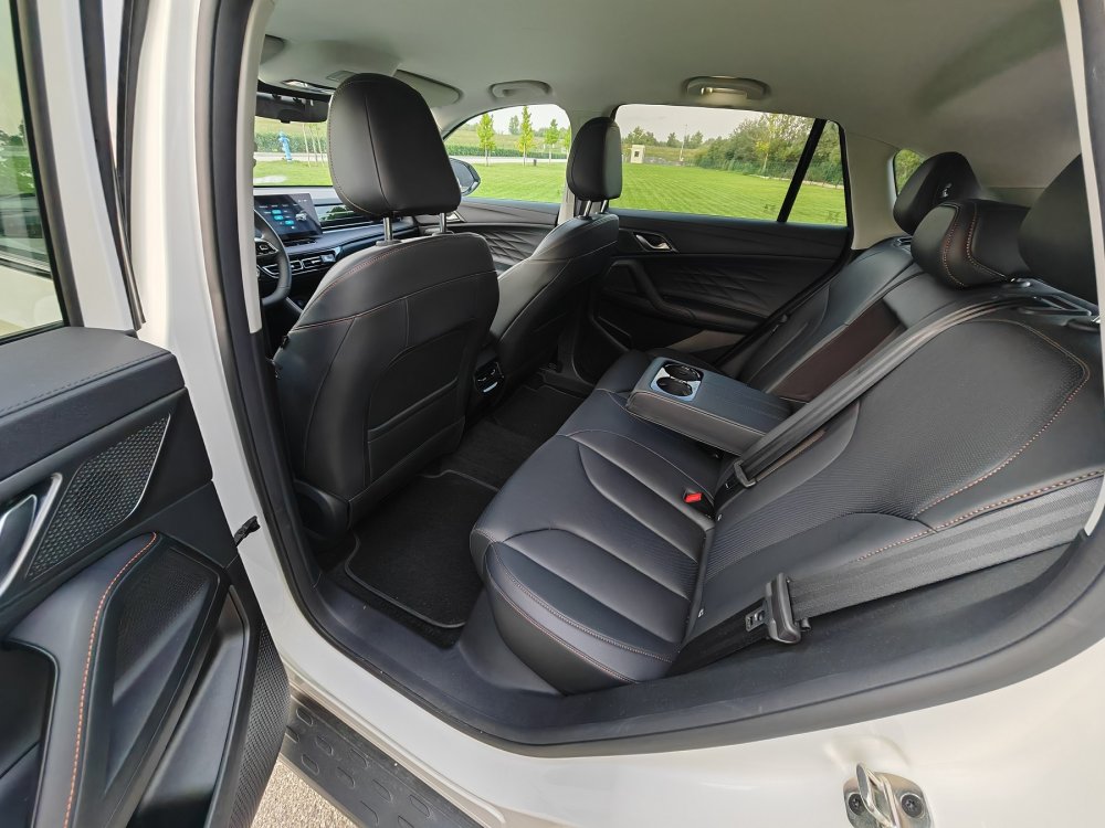 Što se sjedala tiče, u našoj Luxury verziji smo imali lijepo profilirana i udobna sva sjedala presvučena crnom ekološkom PU kožom s crvenim šavovima i perforiranom strukturom na središnjem dijelu cijelog sjedala. Općenito cijela je unutrašnjost izvedena u tom stilu. Prednja sjedala su električno podesiva u 6 smjerova za vozača i u 4 smjera za suvozača, a vozačevo sjedalo i s dodatnom podrškom za lumbalni dio leđa.