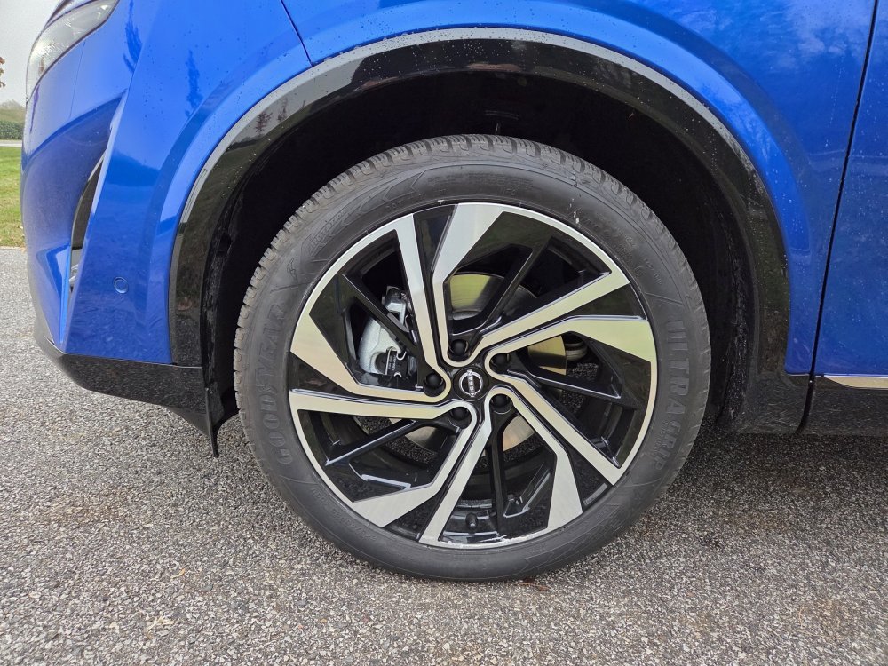 Što se kotača tiče, naš testni Qashqai e-Power model ima za Tekna+ razinu serijske atraktivne 20-colne (8Jx20“) aluminijske naplatke. Mi smo imali zimske GoodYear Ultra Grip Performance gume dimenzija 235/45R20 100V. Umjesto rezervnog kotača smo imali set za popravak guma.