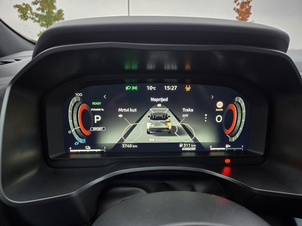 Grafika sučelja TFT zaslona veličine 12,3“ za vozača također je donekle izmijenjena. Instrumenti na zaslonu poprimaju crvenu boju kada je aktiviran način rada Sport, zelenu kada je aktiviran način rada Eco ili svijetlo sivu u standardnom načinu rada – bez obzira na to upotrebljava li se standardni ili napredni prikaz. Mi smo u sklopu doplatnog Paketa Comfort imali i praktični 10,8“ Head-up zaslon.
