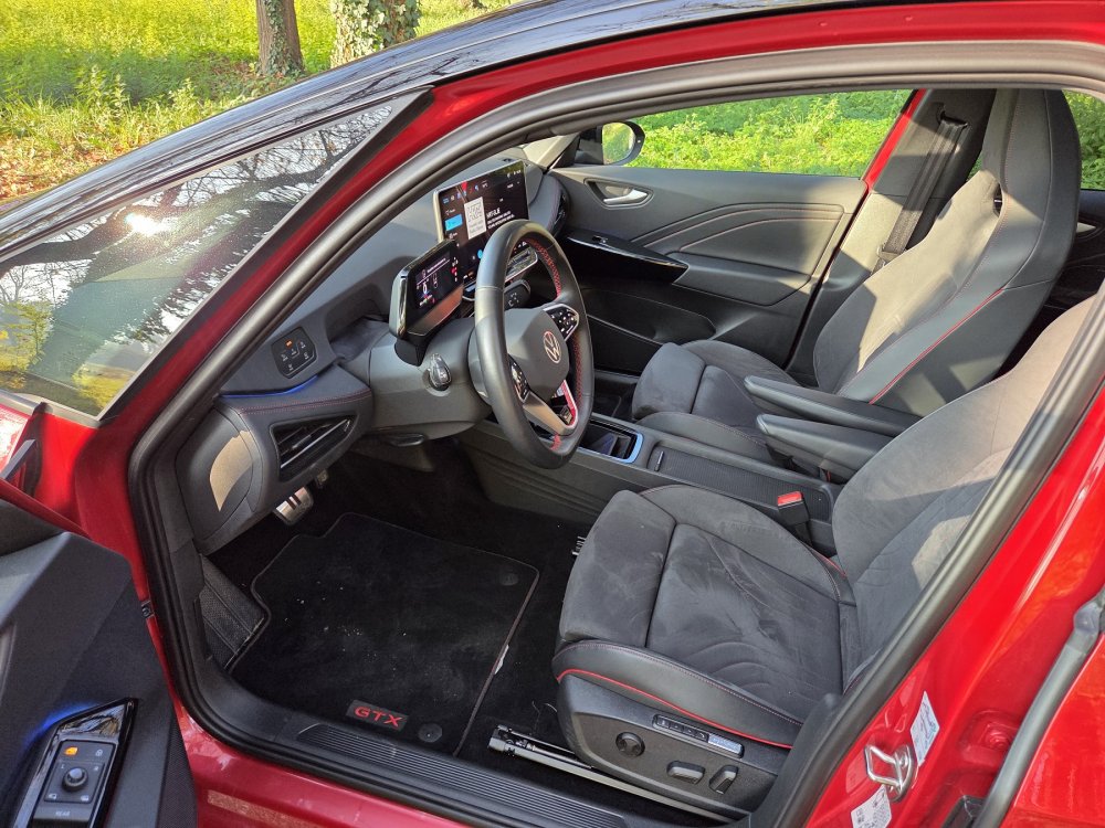 Premium sportska sjedala u GTX stilu kao standard naglašavaju sportski karakter ID.3 GTX-a svojim ergonomskim oblikom, crvenim ukrasnim šavovima i natpisom GTX na naslonima. Sjedala su presvučena novom Lurus tkaninom (izrađenom od 100 posto recikliranog materijala) i elegantnom i održivo proizvedenom umjetnom kožom (ArtTex). Individualizirane značajke interijera uključuju crvene ukrasne šavove na oblogama vrata i prepoznatljivu površinu armaturne ploče. Crveni šavovi, crvena aplikacija na donjoj oblozi upravljača (na' šest sati') i integrirani kromirani natpis GTX karakteriziraju lako hvatajući višenamjenski upravljač presvučen umjetnom kožom, koji je i grijan.