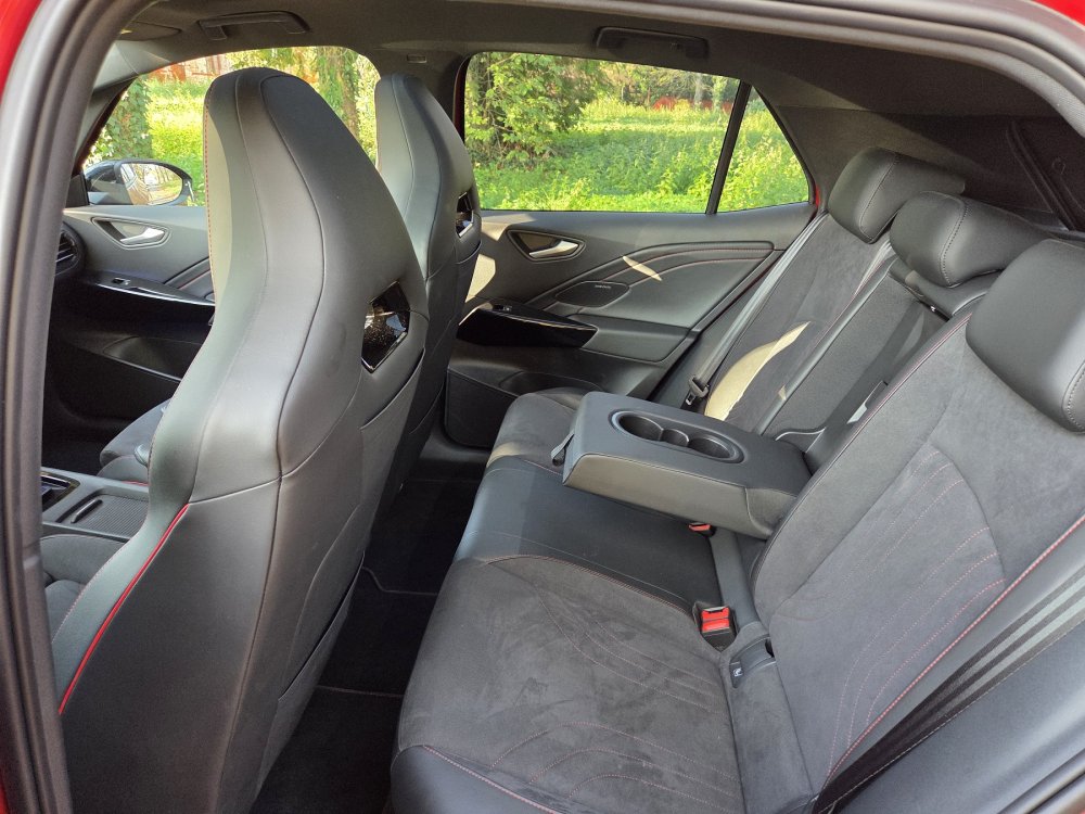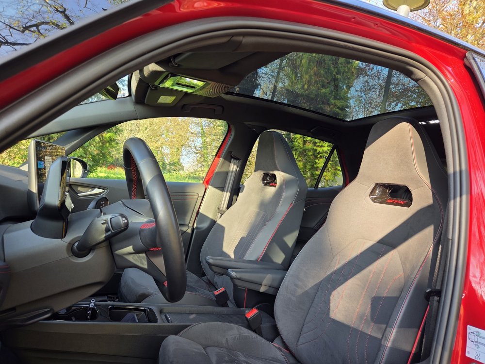 Opcionalno dostupna ergoActive sjedala u slučaju našeg testnog modela specifična su za GTX s crvenim kontrastnim šavovima i obrubom. Njihove značajke uključuju integrirane naslone za glavu, električno podešavanje, funkciju memorije i podesivu potporu za bedra. Ovdje se na unutarnjim površinama sjedala koristi tamni ArtVelours Eco mikroflis; sastoji se od 71 posto recikliranog materijala - sekundarne sirovine koja se dobiva recikliranjem plastičnog otpada.