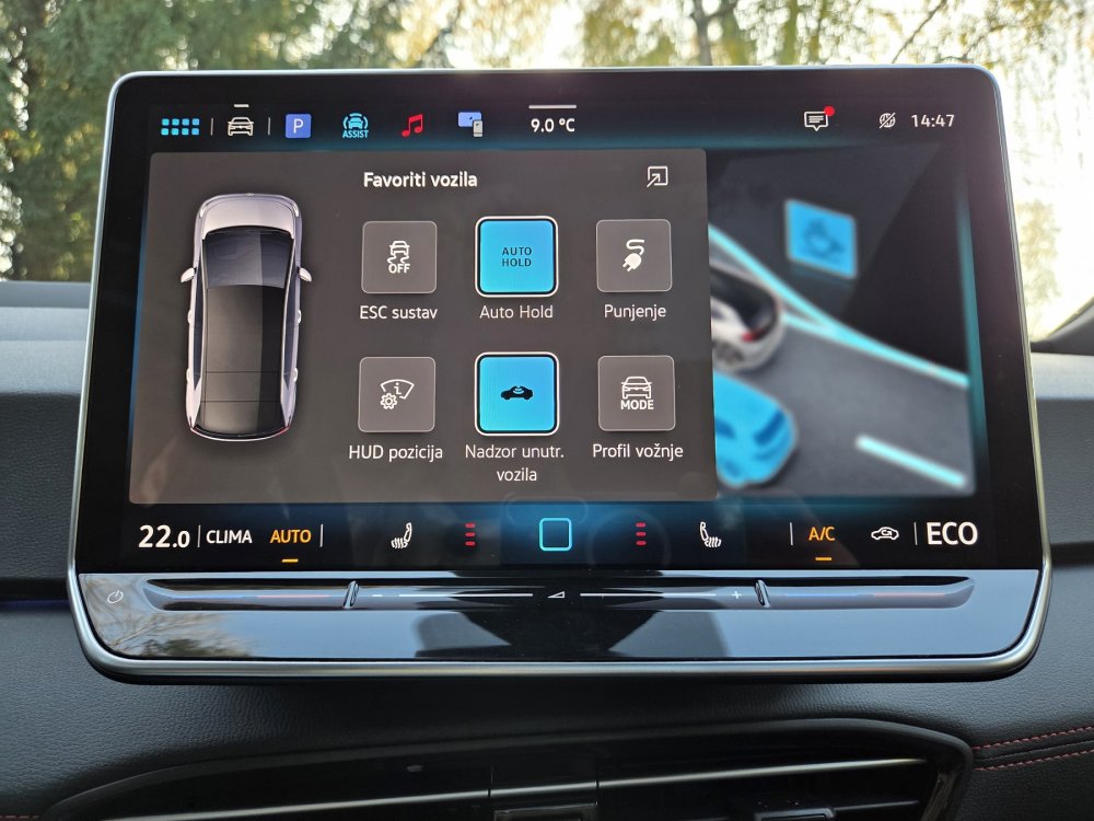 Baterija se zagrijava na optimalnu temperaturu prije nego što se automobil zaustavi kako bi se mogla puniti maksimalnom snagom. To omogućuje smanjenje vremena punjenja za nekoliko minuta, posebno zimi. Naš testni GTX model je imao i doplatnu toplinsku pumpu.