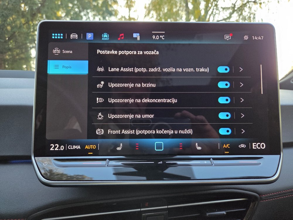 Mi smo u našem testnom GTX modelu imali doplatni Paket 'Assistance Plus', koji uključuje: Memorijska funkcija za Park Assist; Area view; Ambijentalno osvijetljenje (10 boja); Osvijetljena lajsna između prednjih svjetala; Travel Assist, Lane Assist i Emergency Assist; Sistem centralnog zaključavanja i pokretanja motora bez ključa 'Keyless Access' (sa SAFELOCK-om); Alarmni uređaj s nadzorom unutrašnjosti i nagiba vozila; Proaktivna zaštita putnika (u slučaju prepoznavanja kritične situacije (zatvaranje prozora, zatezanje prednjih sigurnosnih pojaseva, povećavanje tlaka u kočionom sustavu); Side Assist pomoć pri promjeni vozne trake, upozorenje na vozila koja se nalaze u 'mrtvom' kutu, Rear Traffic Alert; Park Assist Pro sa Park Distance Control-om.