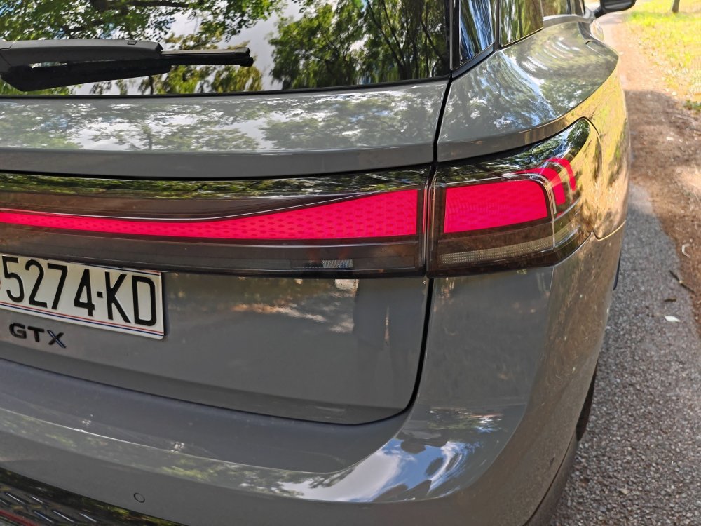 Na stražnjem dijelu obje GTX verzije ID.7 modela, horizontalne linije naglašavaju širinu karoserije. Najdominantnija linija je horizontalna LED traka koja se proteže prema van u omotajuće LED stražnje svjetlosne skupine. GTX modeli su serijski opremljeni prilagodljivim 3D LED stražnjim svjetlosnim skupinama, uključujući dinamičnu funkciju pokazivača smjera.