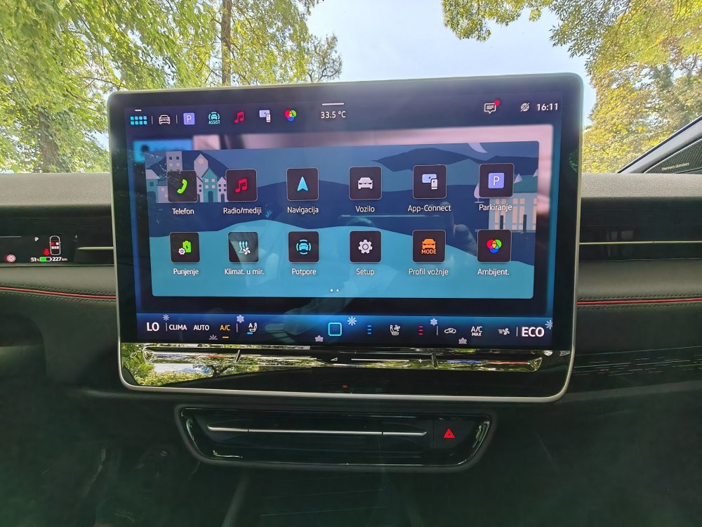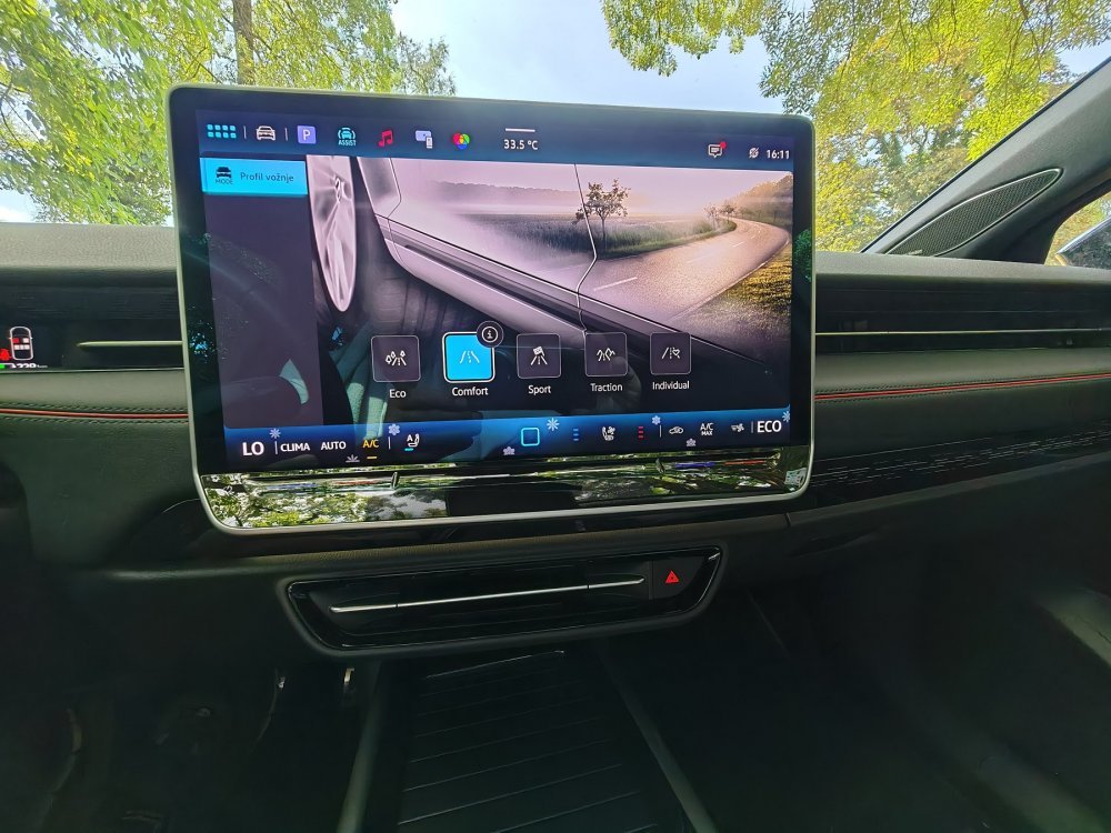 Standardni infotainment sustav služi kao kontrolni centar. Ima intuitivnu strukturu izbornika i veliki zaslon osjetljiv na dodir, koji se čini samostojećim i mjeri 38 cm (15 inča) po dijagonali.