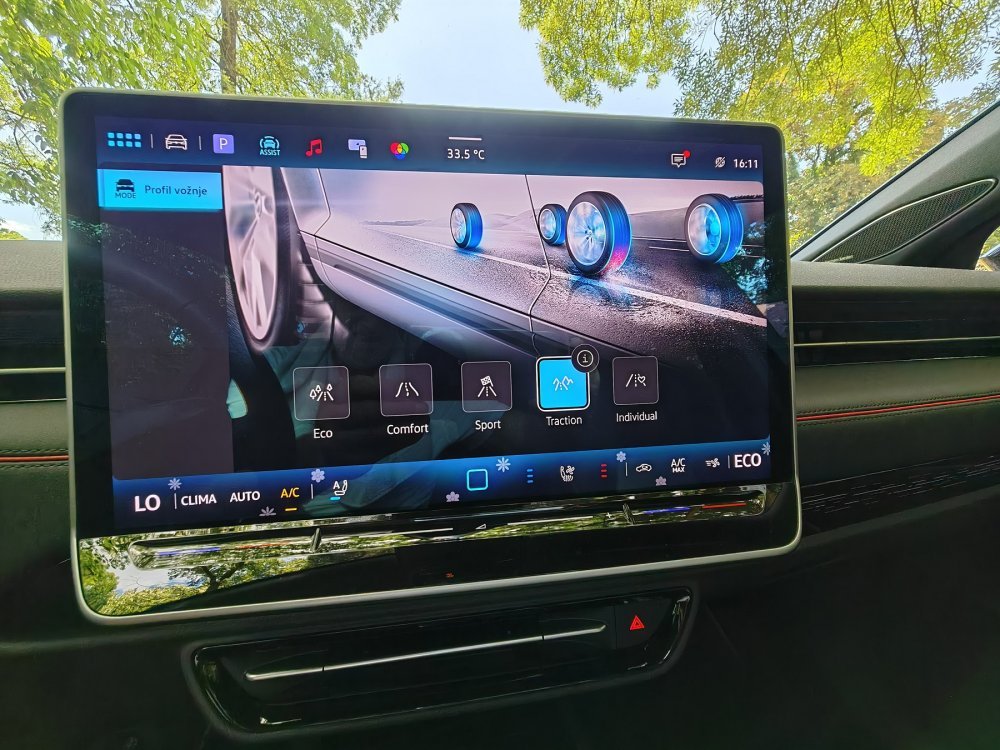 DCC podvozje GTX modela Oba ID.7 GTX modela opcionalno su dostupna s modificiranim DCC adaptivnim upravljanjem podvozjem (kao u slučaju našeg testnog VW ID.7 Tourer GTX 4MOTION s opcijskim Paketom 'Exterior Plus'). DCC podvozjem upravlja se putem novo parametriziranog Upravitelja dinamike vozila (Vehicle Dynamics Manager), koji nudi širok raspon mogućnosti prilagodbe upravljanja vozilom.