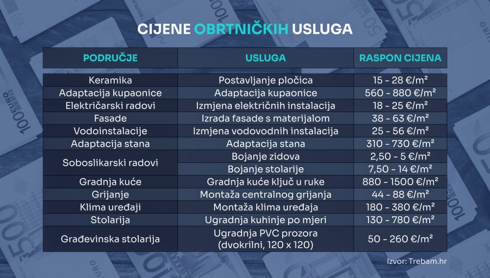 Iza rasta cijena stoji kombinacija nekoliko čimbenika: kroničan nedostatak radne snage, poskupljenje materijala i sirovina te rast plaća u građevinskom sektoru. Uz to, tržište obilježavaju velike razlike u cijenama istih usluga, što potrošačima dodatno otežava snalaženje. Te razlike nerijetko proizlaze iz kvalitete materijala, složenosti radova, ali i same dostupnosti izvođača.
