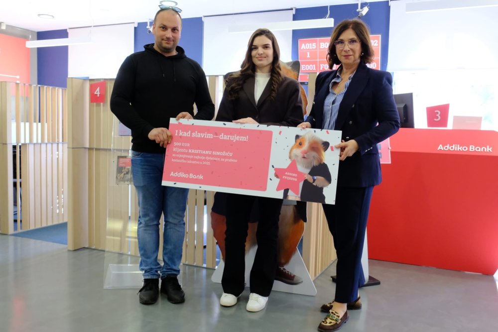 Na prigodnoj dodjeli nagrađen je i klijent Kristian Sinožić koji je prvi u 2025. godini sudjelovao u ocjenjivanju i dao pozitivnu ocjenu korisničkog iskustva Vanesi Vlizlo. Kao znak zahvalnosti za povratnu informaciju i doprinos unapređenju usluge, uručena mu je nagrada u iznosu od 500 eura na Addiko Mastercard Prepaid kartici.
