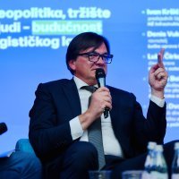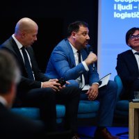 Marko Boban, voditelj službe u Upravi za EU fondove i strateško planiranje u Ministarstvu mora, prometa i infrastrukture; Ivan Kršić, predsjednik Uprave, HŽ Infrastruktura; Denis Vukorepa, ravnatelj Lučke uprava Rijeka; Luka Čirko, član Uprave Hrvatskih autocesta te Denis Dvoržak, pomoćnik direktora iz Ureda za logistiku i regionalnu ekspanziju Hrvatske pošte sudjelovali su na panelu 'Geopolitika, tržište i ljudi – budućnost logističkog lanca'.