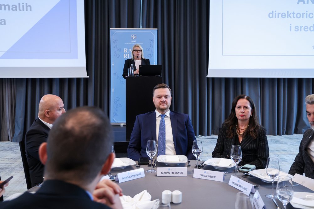 Na tradicionalnom radnom ručku u organizaciji HUP-Udruge malih i srednjih poduzetnika u fokusu su bili porezni zaokret, digitalizacija poreznog sustava i fiskalizacija 2.0, ali i pitanje kako rast plaća učiniti održivim bez gubitka konkurentnosti. Skupu je nazočio potpredsjednik Vlade i ministar financija Marko Primorac, a poruke poslodavaca iznijeli su glavna direktorica HUP-a Irena Weber, predsjednik HUP-a Mislav Balković i predsjednik HUP-Udruge malih i srednjih poduzetnika Boris Antunović