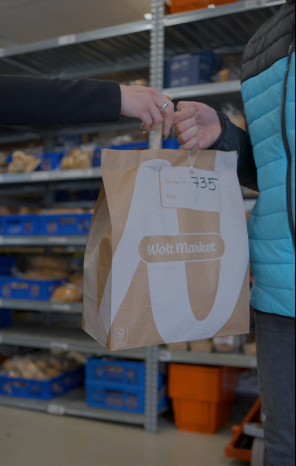 Sustav najprije korisniku u aplikaciji sugerira najbliži Wolt Market. Nakon toga korisnik odabire proizvode iz tog marketa i dovršava narudžbu, koja se potom pojavljuje na ekranu zaposlenika u odabranom Wolt Marketu. Uz nju dolazi i jasno određena ruta kretanja kroz prostor. Lijevo, treća polica, drugi red odozgo. Proizvod se skenira, provjerava, pakira. U isto vrijeme, sustav već traži dostavljača koji će narudžbu preuzeti.