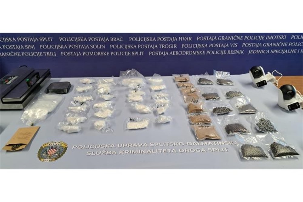 U sklopu kriminalističkog istraživanja, kojim su bile obuhvaćene četiri osobe, policijski službenici Službe kriminaliteta droga PU su na sinjskom području pronašli i oduzeli vreće i torbe, u kojima je bilo 715 grama droge heroin, 1056 grama droge crni heroin i 1637,8 grama kokaina.