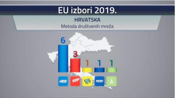 Raspoloženje birača u ovom trenutku pokazuje da bi HDZ osvojio čak šest mandata u Europskom parlamentu. SDP bi osvojio tri mandata, dok bi Živi zid, Most i Amsterdamska koalicija osvojili po jedan.