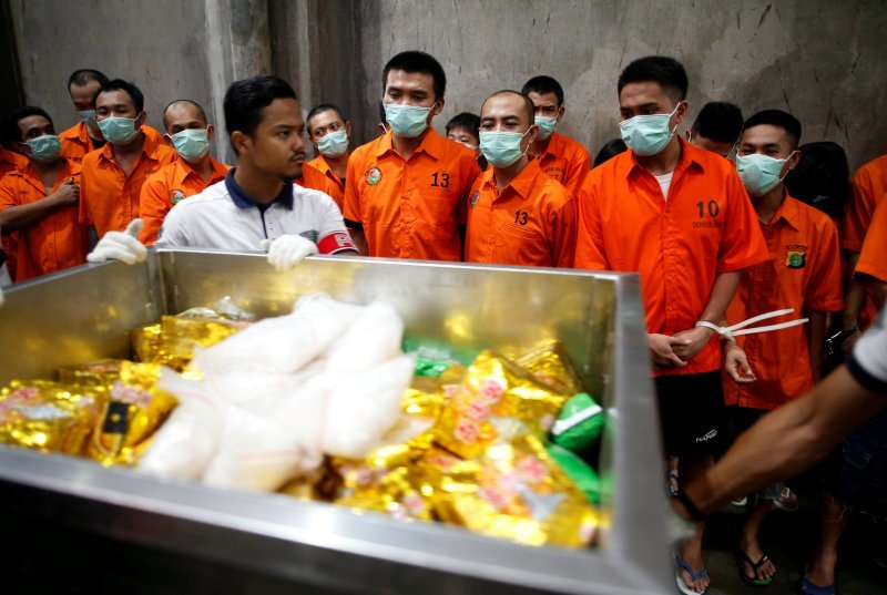 Policija u Jakarti odvozi u spalionicu nedavno zaplijenjenu drogu, između ostalog i 1,4 tone metamfetamina i veliku količinu tableta ekstazi. Spaljivanje se vrši u nazočnosti osumnjičenika za trgovanje narkoticima