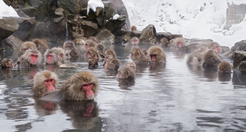 Makaki u Japanu uživaju u toploj kupci u Yamanouchiju. Prirodni izvori tople vode nalaze se u Nacionalnom parku za majmune Jigokudani gdje makaki provode zime i gdje su tokom dugog vremena naučili čak i roniti.