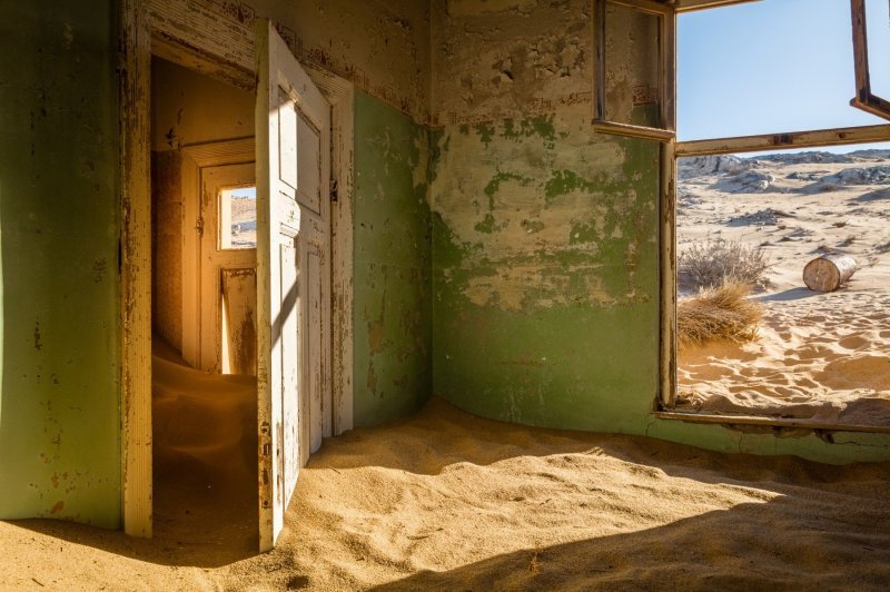 Napušteni rudarski grad Kolmanskop u Namibiji polako nestaje. Iako je grad napušten još davne 1954. godine, fotograf Thomas Frömmel tek je nedavno zabilježio kako ga pustinja polako prekriva.