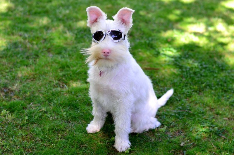 Lijepi šnaucer Sherlock iz Australije mora nositi sunčane naočale jer je albino, pa mu manjka pigmenta koji bi ga zaštitio od Sunca. Ispod naočala Sherlock ima svijetloplave oči.