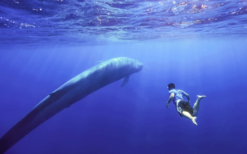 Iako se čini kao da su čovjek i kit blizu, zapravo su prilično daleko. Plavetni kit fotografiran je u Indijskom oceanu u blizini Šri Lanke.