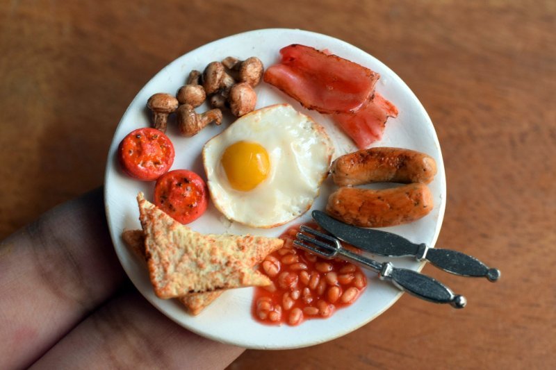 Engleski doručak na fotografiji samo je jedan od mnogih minijaturnih obroka koje je umjetnica Shilpa Mitha iz Indije napravila. Mitha počela se baviti izradom minijaturnih jela nakon što je za sebe napravila naušnice u obliku hamburgera.