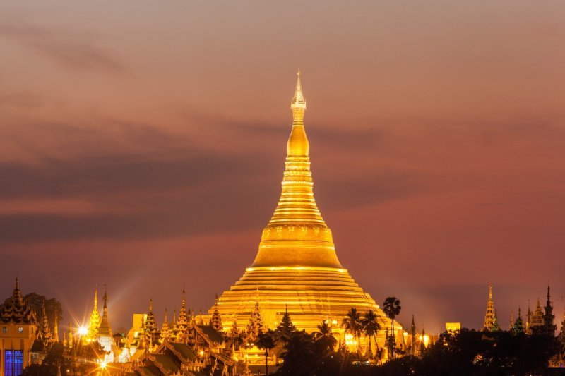 Pagoda Švedagon nalazi se u Yangonu, visoka je 99 metara. Smatra se najsvetijom budističkom pagodom u Mjanmaru.