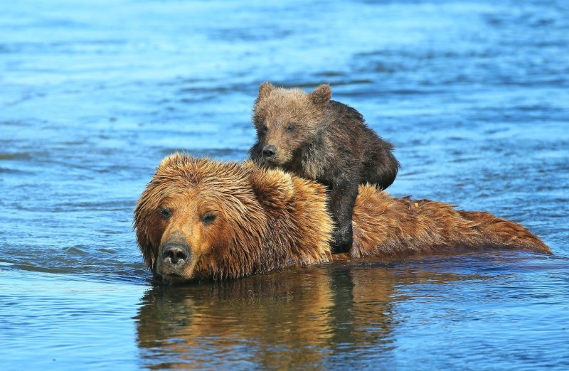 Mama medvjedica prenosi svog mladunca s jedne na drugu stranu jezera. Anthony Goldman fotografirao je medvjede u Nacionalnom parku Lark Clark u Aljasci.