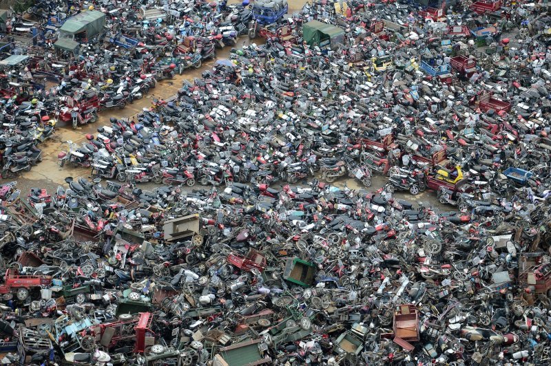 Pogled iz zraka na konfiscirane motocikle u Chenzhouu u Kini oduzima dah. Sva prijevozna sredstva na fotografiji čeka rastavljanje.