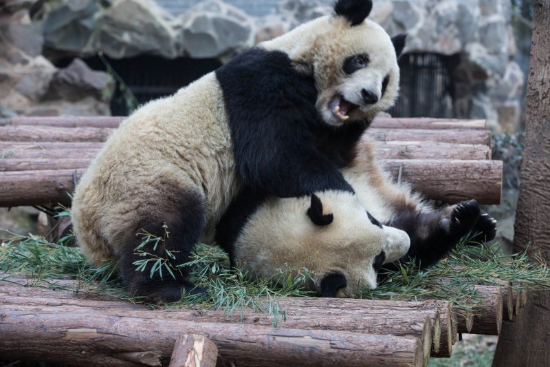 Divovske pande Cheng Da i Cheng Xiao igraju se u zoološkom vrtu u Hangzhouu u Kini