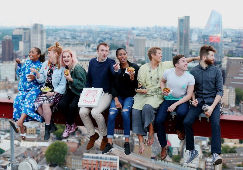 Pobjednici izazova uživaju u ručku na krovu središnjeg Londonskog nebodera. Tvrtka Deliveroo organizirala je natječaj u sklopu kojeg je pozvala zainteresirane da pojedu ručak na visini, a sve kako bi rekreirali legendarnu fotografiju 'Lunch Atop a Skyscraper', snimljenu tijekom izgradnje Rockefeller centra u New Yorku 1932. godine.