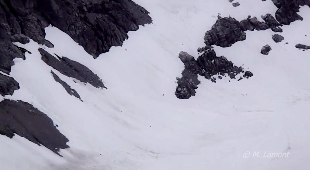 'Prilično sam siguran da je ono dolje sasquatch. Ne vidim ga dobro. Odavde izgleda kao crna točkica usred snježne pustoši', rekao je Myles Lamont dok je snimao neobičnu scenu.