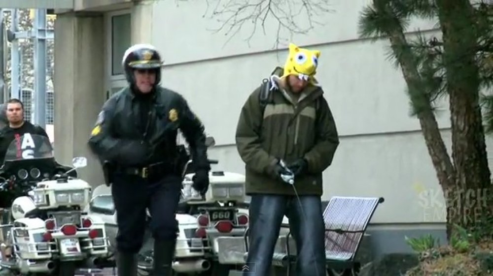 Radi se o klasičnom triku s bocom vode s kojom se glumac Dennis Roady pretvarao da urinira na javnom mjestu. Policija koja ga je spazila je, naravno, reagirala. No, čim su shvatili da mu je u ruci plastična flaša, pustili su ga uz osmijeh na licu – očito mnogima od njih nije prvi put da ih tako netko pokušava prevariti.