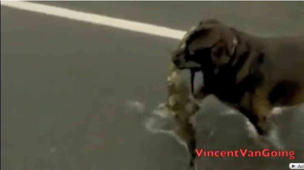 To je vjerojatno uzrokovalo zbunjenost kod mnogih lososa koji su umjesto rijekom svoj put nastavili preko zatvorene prometnice. No, na njihovu nesreću, nisu pobjegle oštrom oku jednog psa čuvara koji je prvo blesavo skakutao po cesti, da bi na koncu ipak ulovio jedan oveći primjerak ribe.